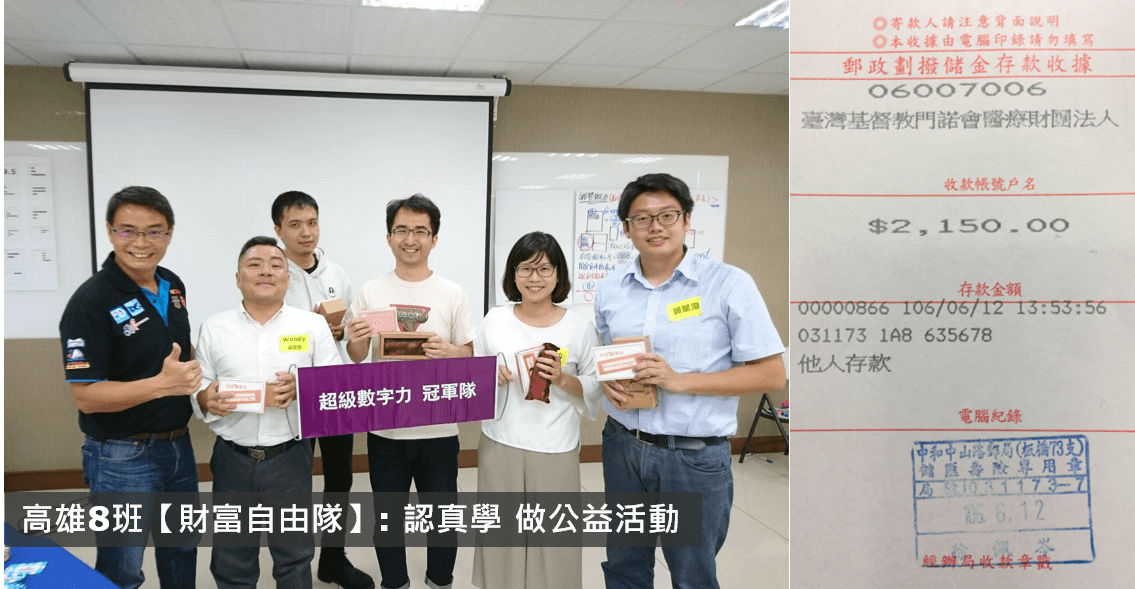 2017.06.10 高雄8班 冠軍隊【財富自由隊】獎金2,150元已捐出,感謝大家
