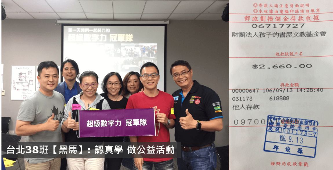 2017.09.08 台北38班 冠軍隊【黑馬】獎金2,660元已捐出,感謝大家