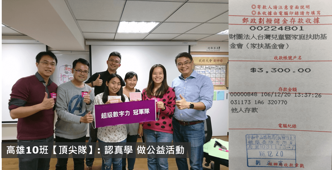 2017.12.16 高雄10班 冠軍隊【頂尖隊】獎金3,300元已捐出,感謝大家