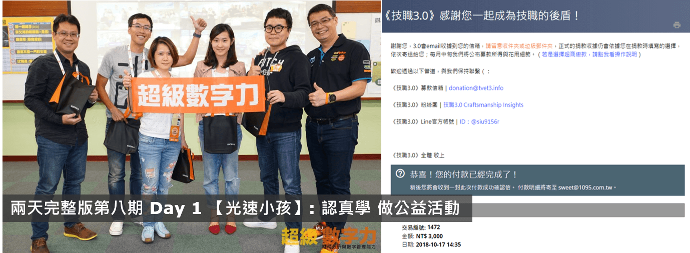 課程中小組得分,由講師MJ統一捐款 $ 3,000 元,由冠軍隊小組決定捐款的弱勢團體。