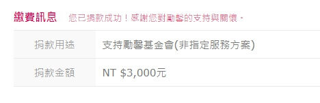 愛心款項$3,000元,已捐給您指定的【勵馨基金會】。