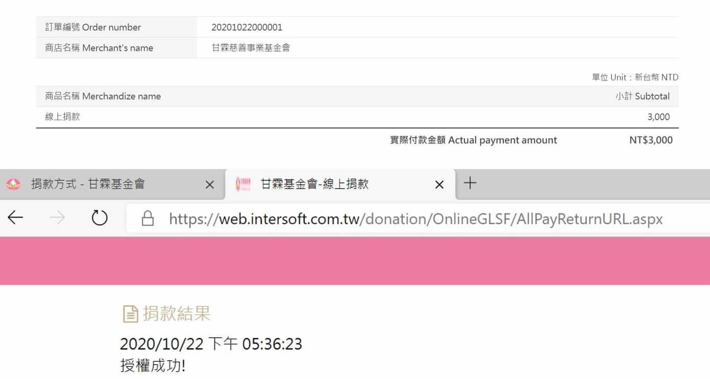 愛心款項$3,000元,已捐給您指定的【財團法人台中私立甘霖社會福利慈善事業基金會】