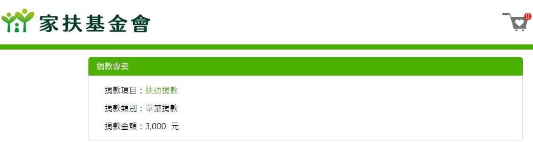 愛心款項$3,000元,已捐給您指定的【社團法人台灣兒童暨家庭扶助基金會】