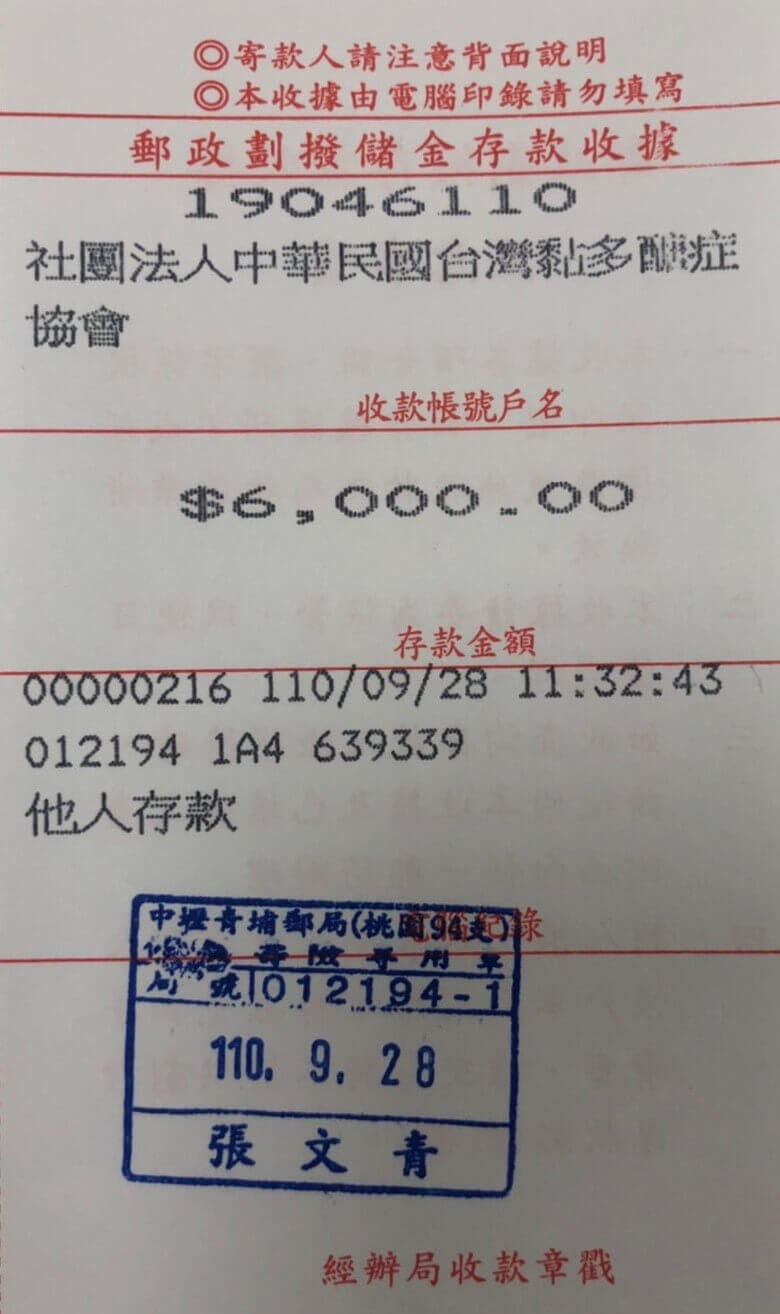 愛心款項$3,000元,已捐給您指定的【社團法人中華民國台灣黏多醣症協會】