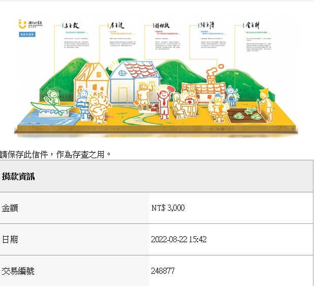 愛心款項$3,000元,已捐給您指定的【財團法人孩子的書屋文教基金會】