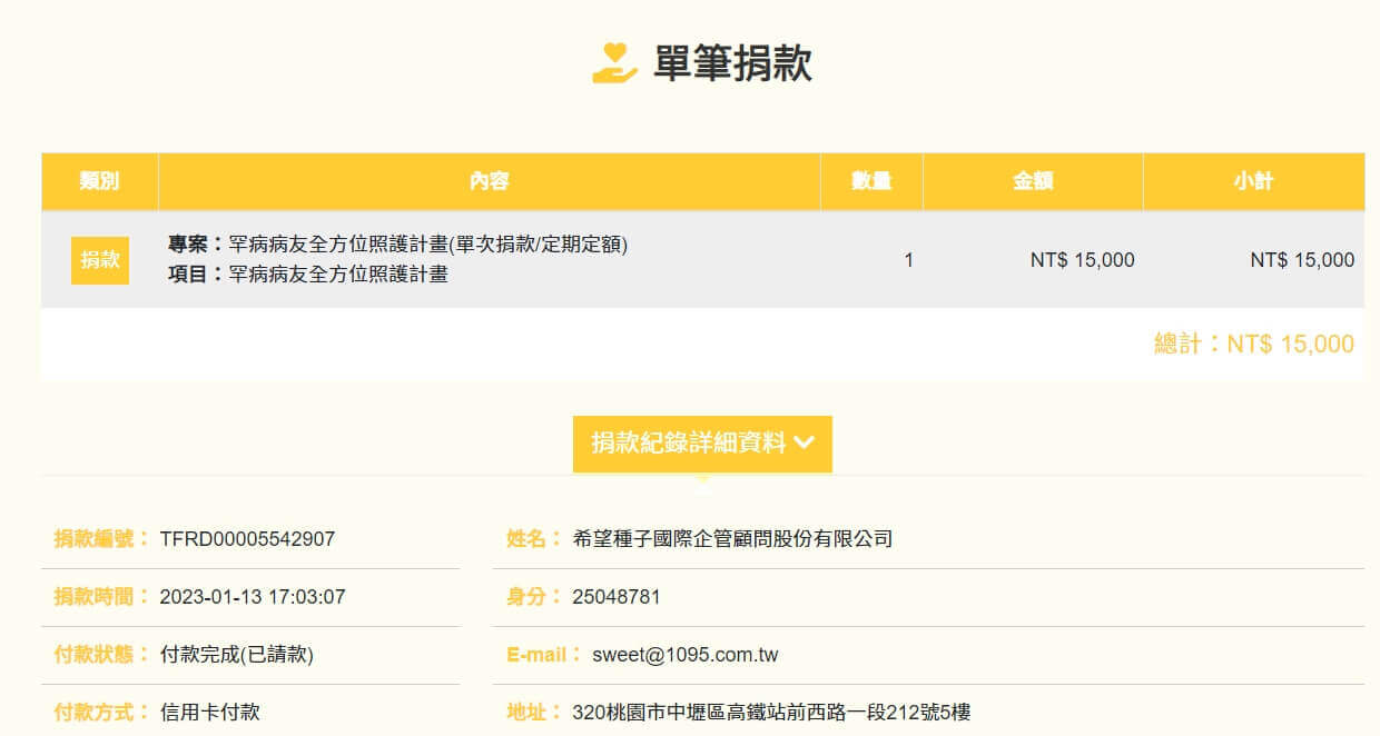(A)+(B) 截至目前為止 ,累計捐款合計=$1,380,111 ,再次感謝大家的愛心