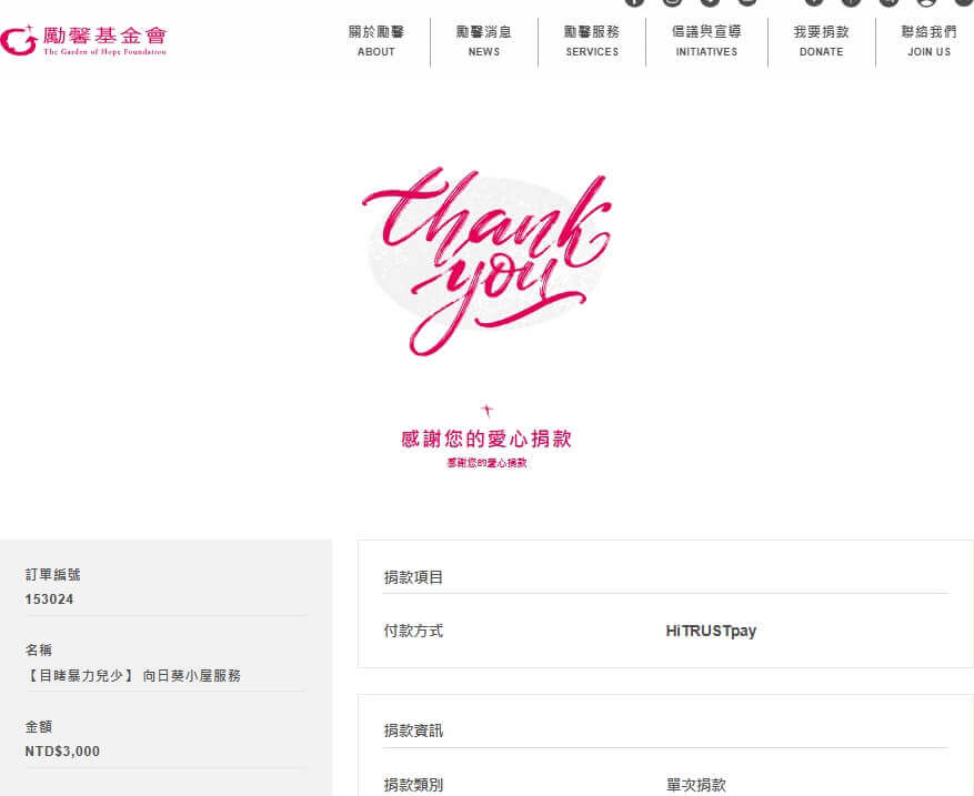 愛心款項$3,000元,已捐給您指定的【勵馨基金會】