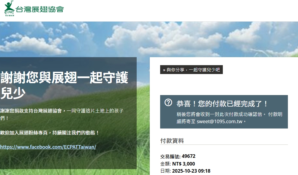 愛心款項$3,000元,已捐給您指定的【財團法人均一平台教育基金會】