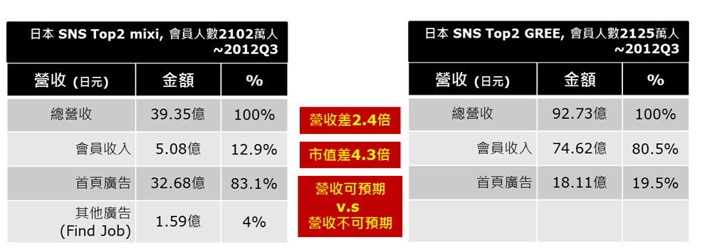 最後舉個日本SNS (Social Network Service) 前二大公司的數據給大家參考, 希望您這回讀懂了, 呵呵呵!