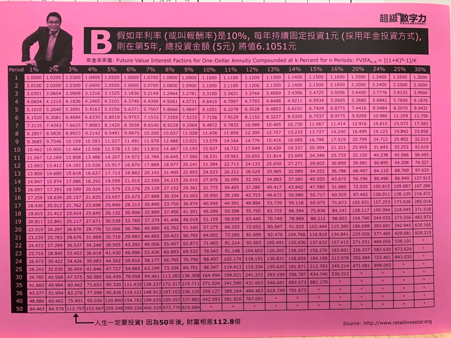 8% 很大? 還是很小?你把時間拉長20年到30年多大呢?不曉得,還記得我們課堂上我們給大家的AB卡嗎?可以去看一下非常嚇人,我幫大家看一下:如果是定期定額,報酬率是8%,假設連續投30年,每一年投入1萬,30年期間共投了30萬: