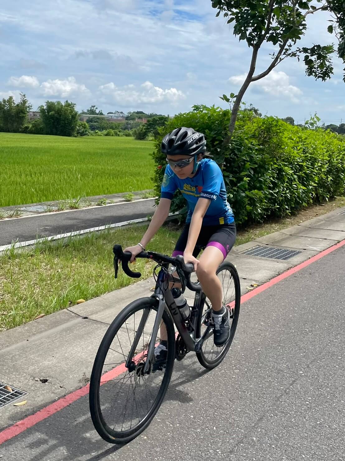 從小看著她的爸爸與哥哥在烈日暴雨狂風中也要騎車或是參加鐵人賽,